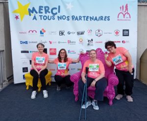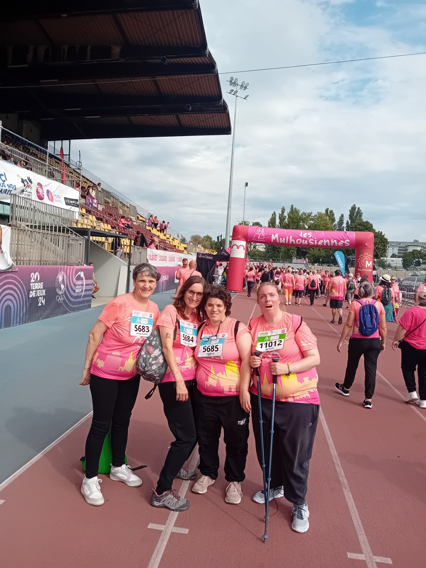 « Sophie, Pamela, Anne-Marie et Marie-Paule avons participé pour la première fois aux Mulhousiennes. Nous avons marché 5 kilomètres. Il y avait 9000 participants. Tout au long du chemin, de nombreuses personnes nous encourageaient. Nous avons été très fières d’aller jusqu’au bout. Il y avait une super ambiance, cette journée a été remplie de beaucoup d’émotions et de joie. Nous prenons rendez-vous pour y participer l’année prochaine ».